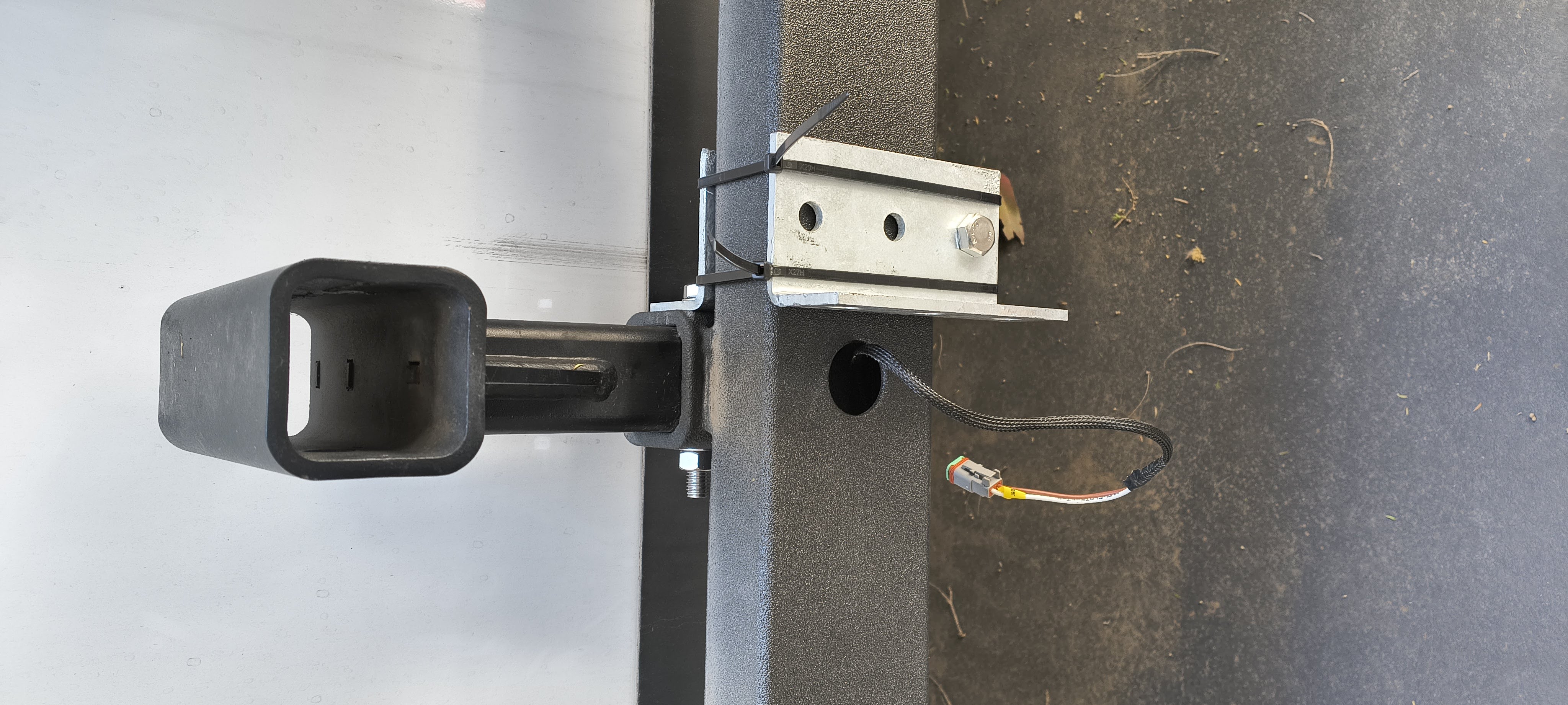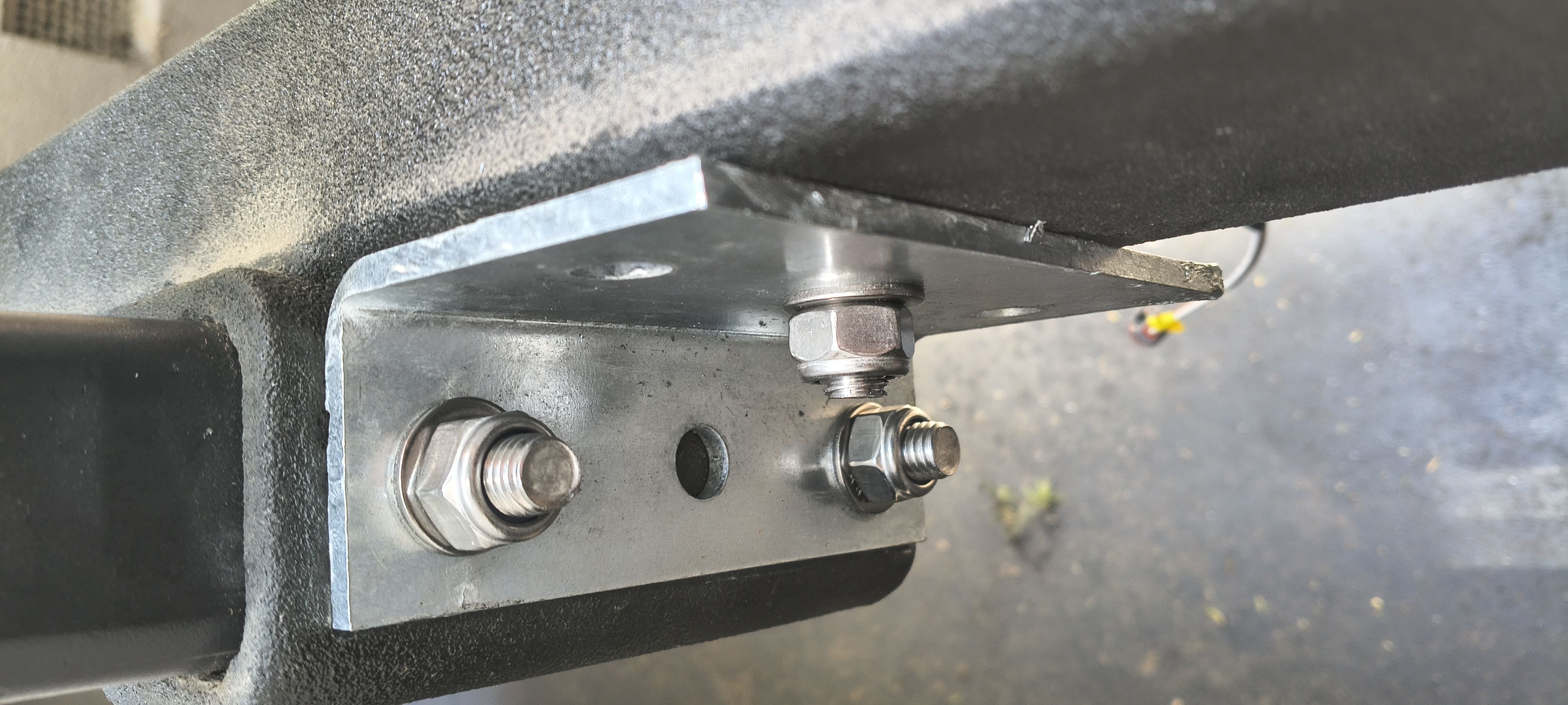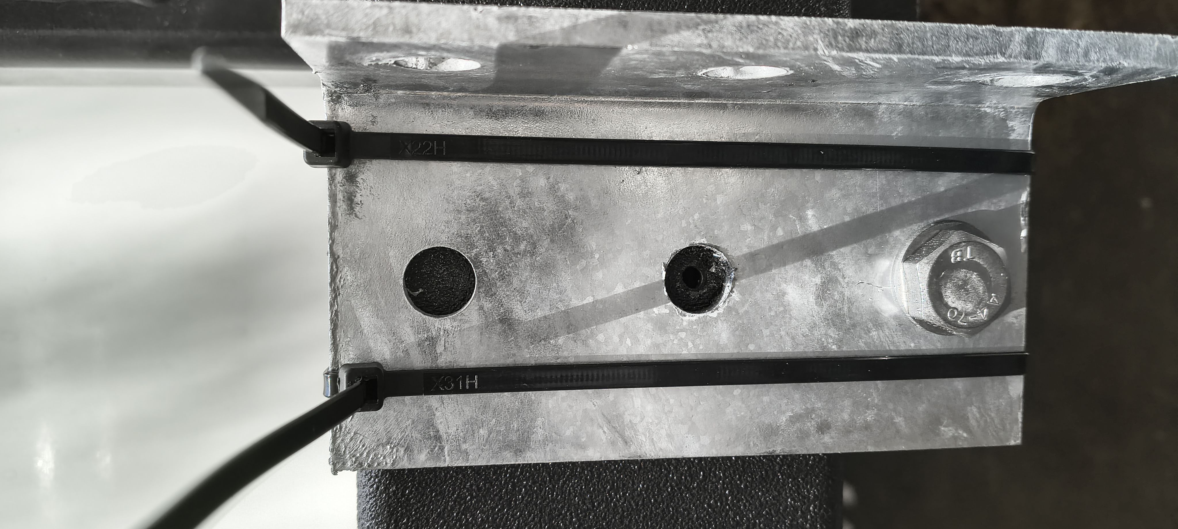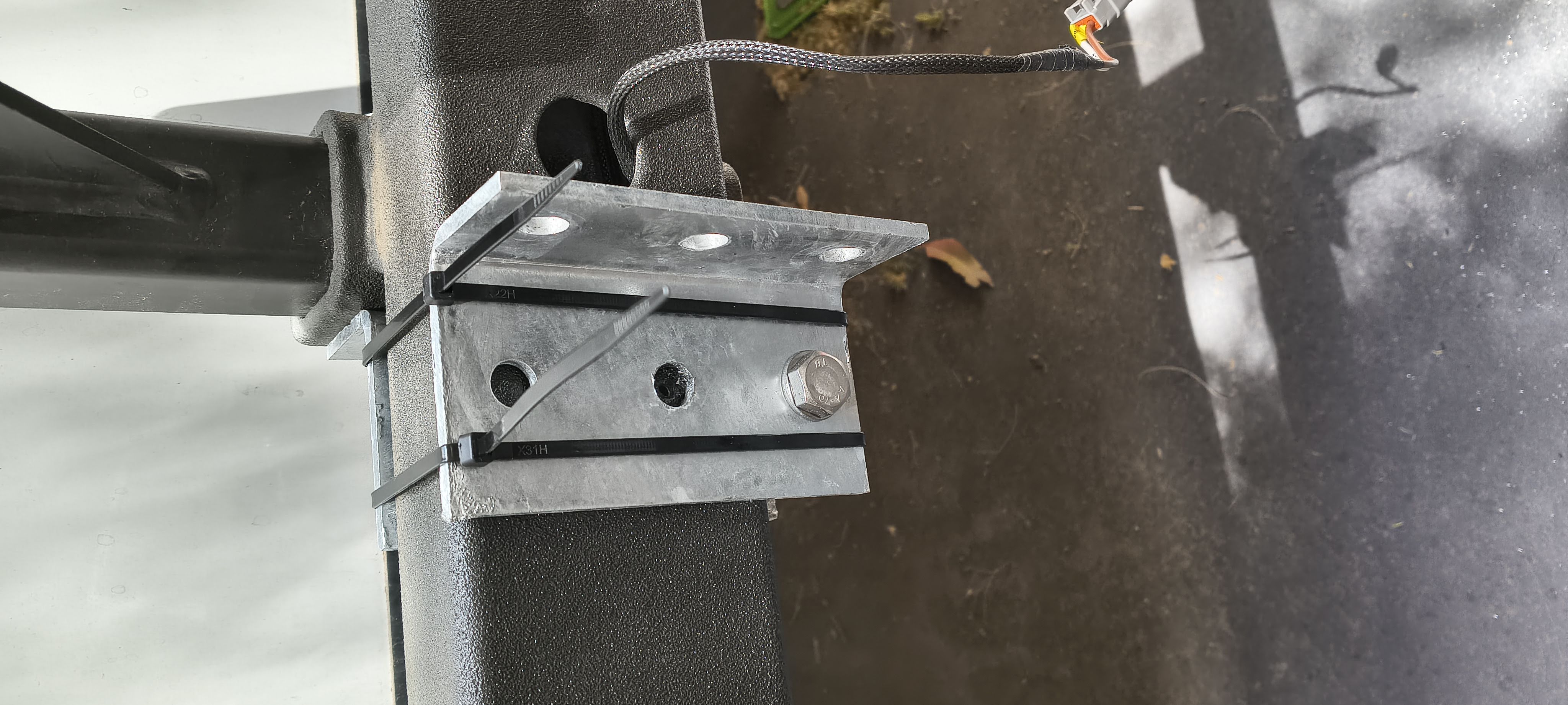Bracket mounted on one side. Zip ties holding other bracket to template hole position