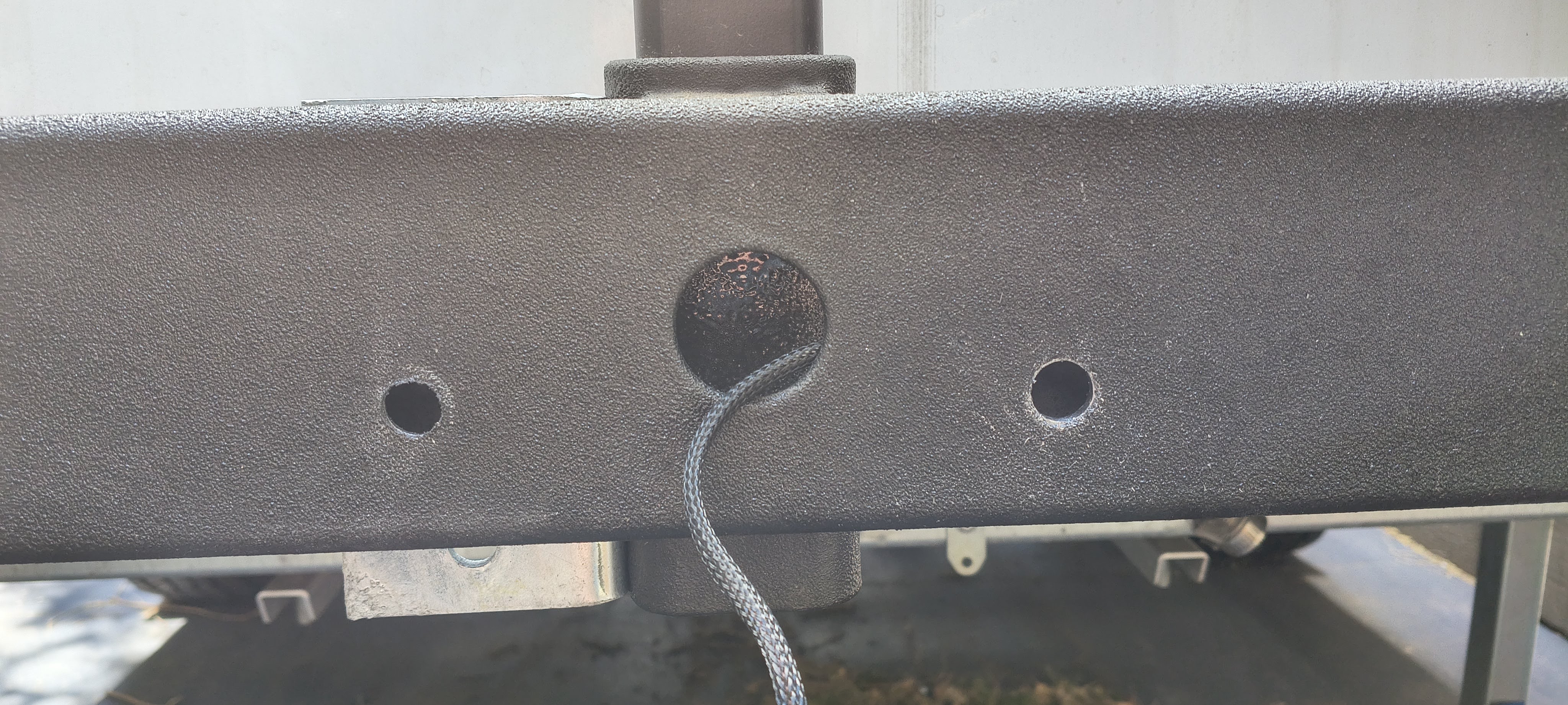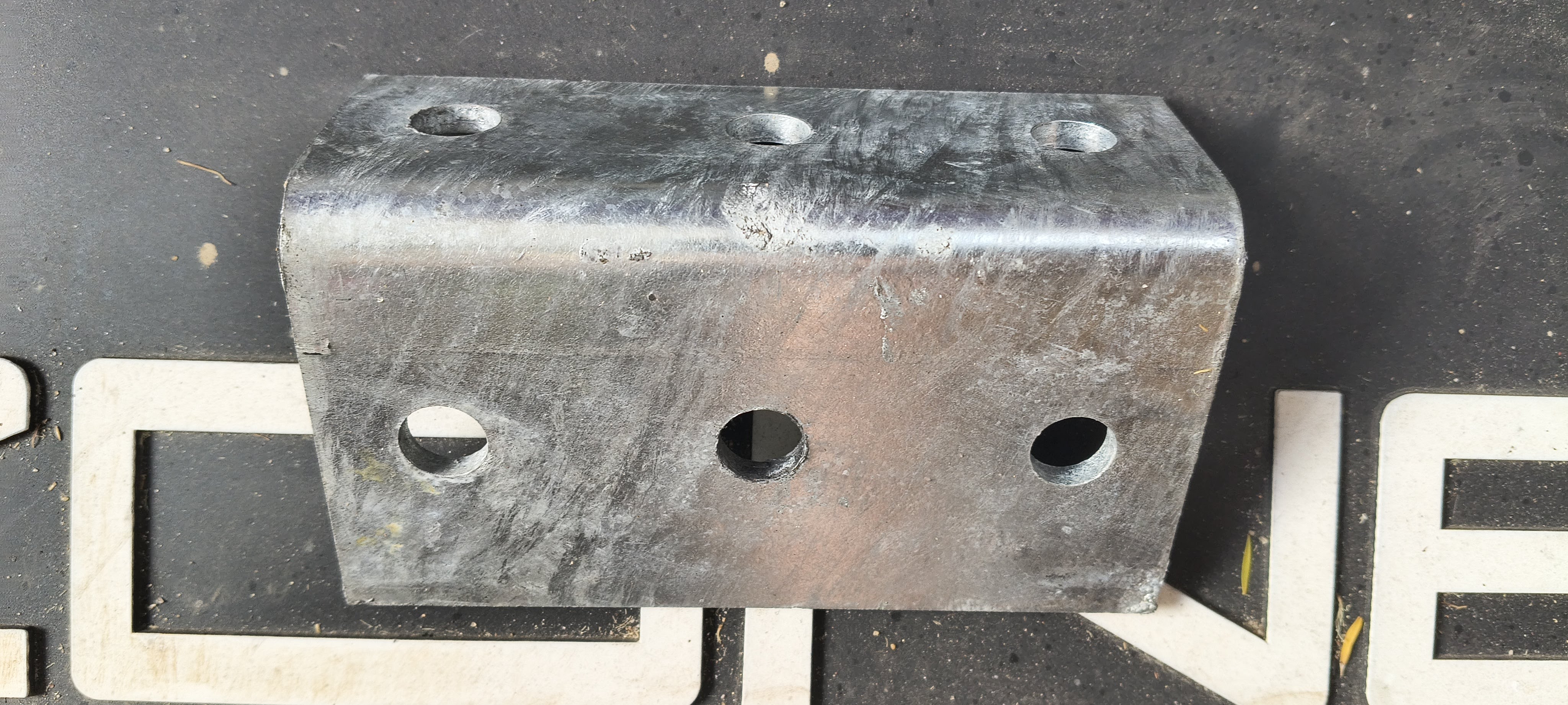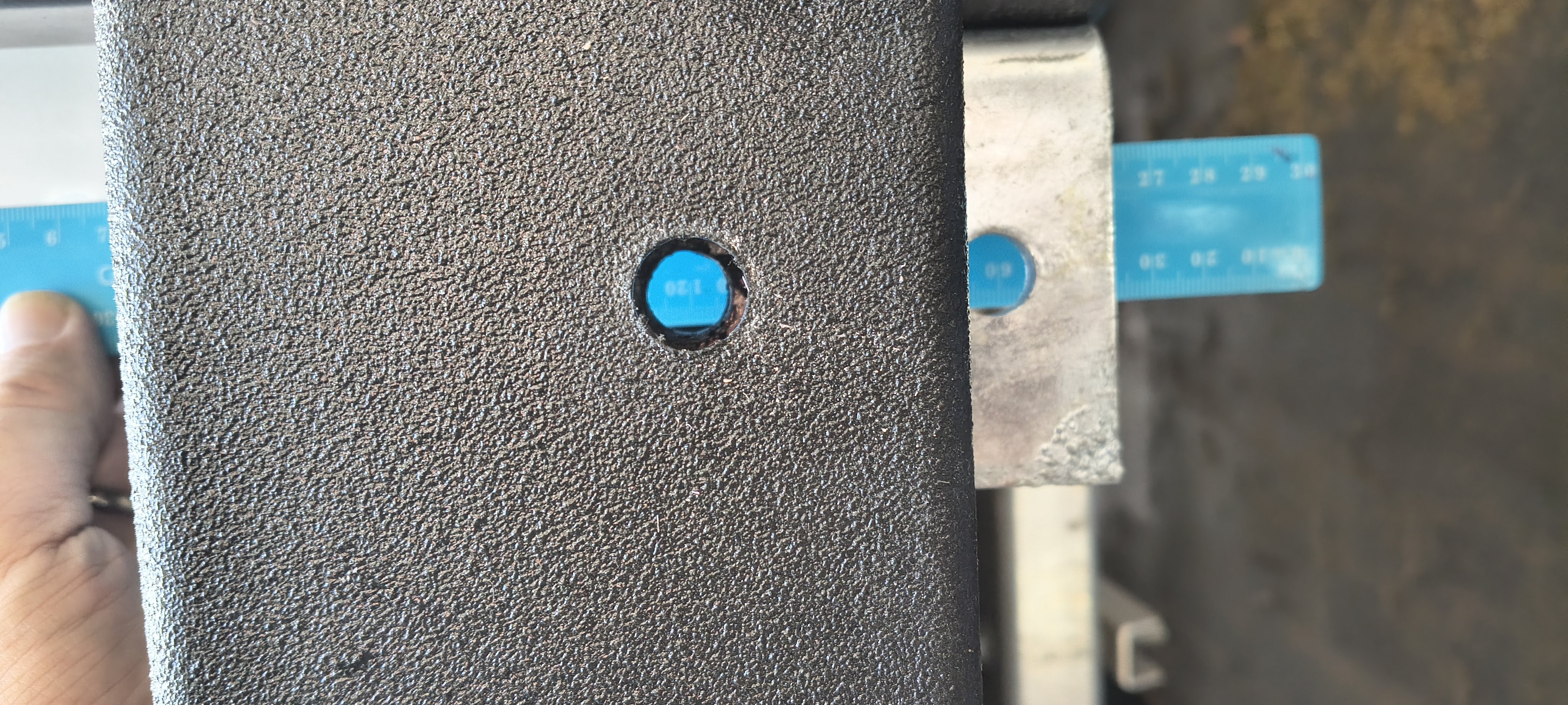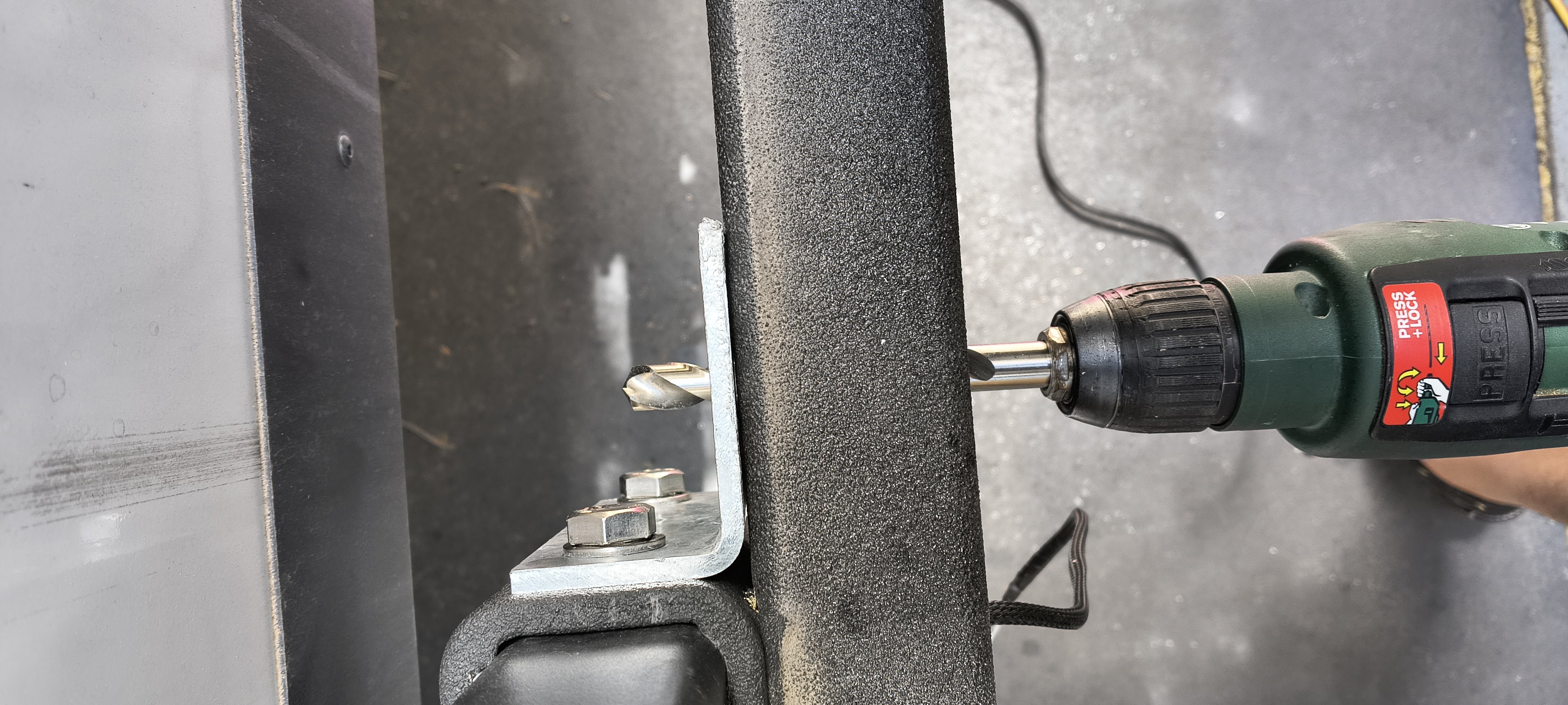 Bracket template positioned ready to drill hole - originally was going to do do two holes but top one won't leave enough room for square washer